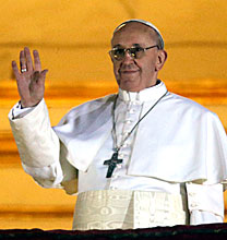 Але хто? Некаторы час гэта застаецца загадкай. Народ на плошчы святога Пятра і перад тэлевізарамі чакае. І вось на балконе базылікі святога Пятра паяўлянецца кардынал прадыякан Жан-Луі Таран – Старшыня Папскай Рады да спраў міжрэлігійнага дыялогу – і ўрачыста аб’яўляе: “Annuntio vobis gaudium magnum: Habemus Papam!” – “Аб’яўляю вам вялікую радасць: мы маем Папу!”. Ім стаў аргентынскі кардынал арцыбіскуп Буэнос-Айрэс Хорхэ Марыё Бергольё, езуіт, які выбраў сабе імя Фрацішак. Запоўненая большасцю італьянцаў, плошча святога Пятра ўзрываецца апладысментамі. Кацёл Сусветны і таму Папа можа быць з розных кантынэнтаў.