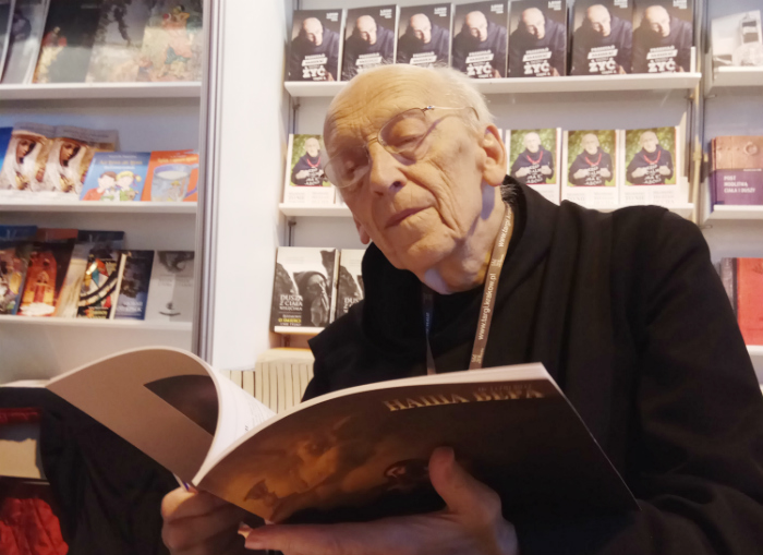Сам 87-гадовы аўтар пастаянна прысутнічаў на выставе — сядзеў за столікам каля свайго стэнда, і да яго ўвесь час стаяла чарга тых, хто хацеў не толькі атрымаць аўтограф вядомага і любімага аўтара, але і абавязкова паразмаўляць з ім. Увогуле, усё гэта трэба было бачыць. Мы мелі такое шчасце на працягу трох дзён быць сведкамі нястомнай пастырскай любові, якою айцец Ляон атуляў кожнага, хто да яго падыходзіў. Атуляў і прытуляў да свайго сэрца, знаходзячы літаральна для кожнага слова, усмешку, жарт…