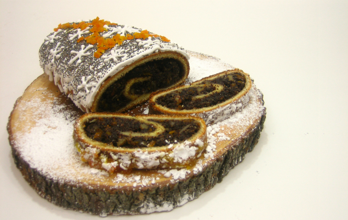 Яшчэ цёплы макоўнік паліць глазураю і пасыпаць макам або ўпрыгожыць цукатамі (можна проста пасыпаць цукроваю пудраю).