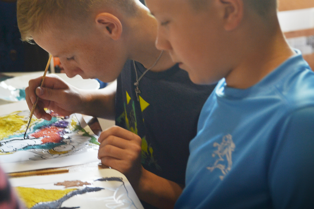 Творчае заданне для нас — шлях да самапазнання. На гэты раз мы малюем «комікс» — ліст паперы дзелім на чатыры часткі, у першых трох ілюструем тое, што мы будзем рабіць, каб быць бліжэй Езуса, а ў чацвёртай частцы — чаго нам не стае ў адносінах з Хрыстом. Усе малюнкі дзяцей і аніматараў развешваюцца на сценах.