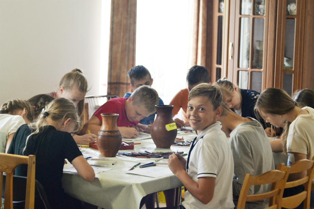 Першая палова дня прысвечаная канкрэтнай тэме. Спачатку дзеці ўважліва слухаюць падрыхтаваную для іх катэхезу. У простых, зразумелых словах катэхезы — фундаментальныя праўды веры. Часта дзеці самі прыходзяць да правільных высноваў, падымаюць рукі, актыўна адказваюць на пытанні, бачна іх шчырая зацікаўленасць. Пасля катэхезы — творчае заданне. Мне самой вельмі цікава і слухаць катэхезу, і пасля разам з дзецьмі ўдзельнічаць у творчым заданні. У якасці творчага задання ў дзень заезду дзеці ўпрыгожваюць падсвечнікі бісерам, бліскаўкамі, зоркамі — кожны ўкладвае фантазію ў свой падсвечнік, каб удзельнічаць з ім штодня ў вячэрняй малітве на Ружанцы. Для мяне гэтыя дні сталі сапраўднымі рэкалекцыямі...