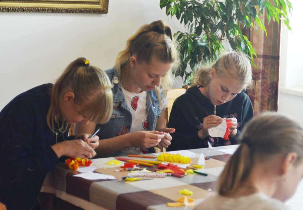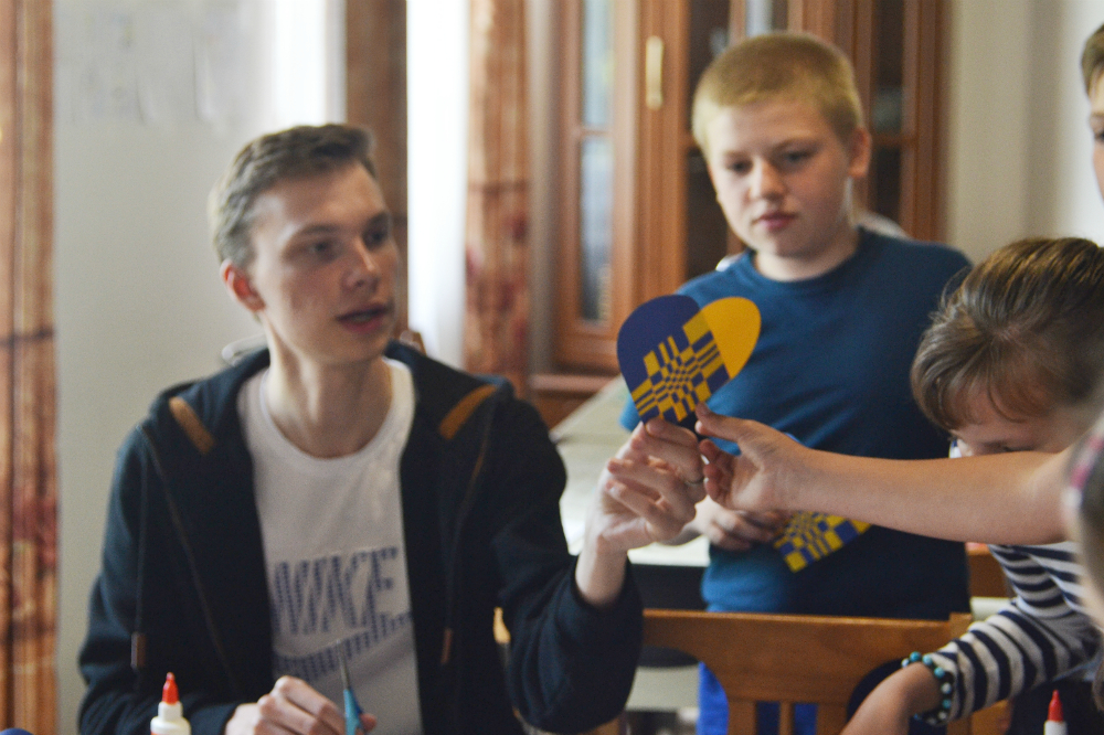 Сваімі рукамі з паперы мы робім сэрцы з дзвюх паловаў: адна палова — маё сэрца, другая — Сэрца Хрыста. Сэрцы нашыя з Езусам — такія моцныя, такія мужныя! Некаторыя з дзяцей робяць сэрцы ў падарунак сваім блізкім.
