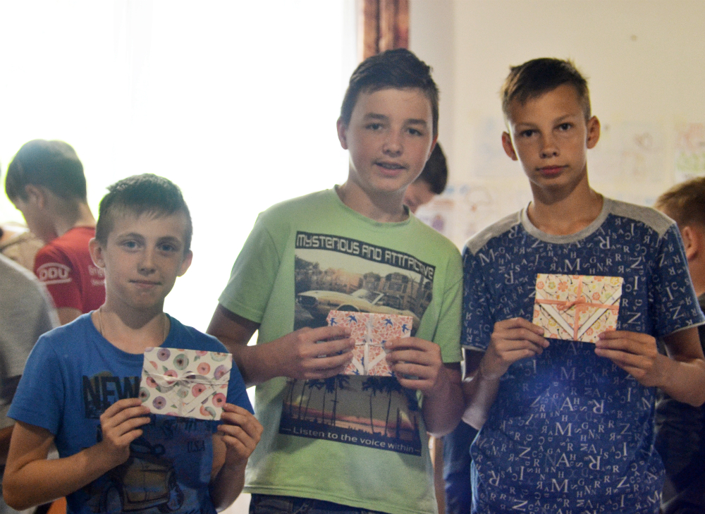 Для дзяцей загадзя падрыхтаваная дэкаратыўная папера з прыгожым малюнкам. Кожны выбірае сабе ліст, які яму даспадобы. Заданне такое: на адваротным баку трэба ўмоўна падзяліць ліст на тры часткі; на першай частцы напісаць пра свае ўражанні, пра дарагія сэрцу моманты падчас адпачынку, на другой частцы трэба намаляваць найбольш яркі ўспамін з рэкалекцый; а на трэцяй частцы ліста твае сябры пішуць табе прыемныя словы, камплементы. Дзеці ахвотна выконваюць заданне, усе радасна пакідаюць запісы на лістках сяброў. А самае галоўнае — з гэтага ліста паперы мы робім прыгожы канверт на памяць.