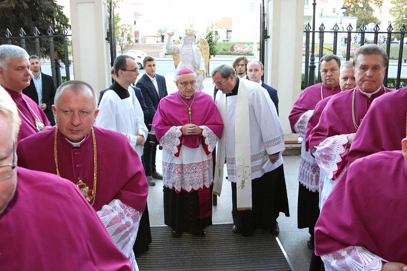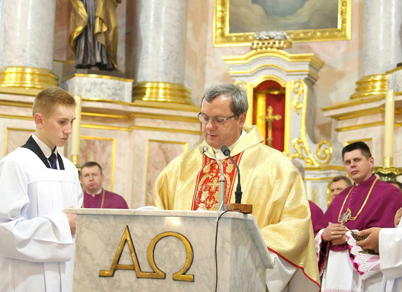 «У перакладзе на беларускую мову імя Міхал азначае “Хто ж як Бог!”. Менавіта з гэтымі словамі арханёл Міхал пайшоў на барацьбу з узбунтаванымі анёламі, са злым духам», — сказаў у сваёй гаміліі мітрапаліт Тадэвуш Кандрусевіч. Арцыпастыр выказаў занепакоенасць сучасным светам, які аддаляецца ад Бога, ігнаруючы таксама небяспеку, якая сыходзіць ад сатаны. Мітрапаліт Тадэвуш звярнуў увагу на крызіс сям’і, якая сёння найбольш падвержана нападкам злога духа. «Мы дазваляем д’яблу нас спакушаць, мы самі трапляем у яго пастку. <...> Езус Хрыстус сваім уваскрасеннем перамог сатану. Таму тут усё залежыць ад саміх нас. Д’ябал не можа спакусіць нас, калі мы будзем прасіць дапамогі ў Бога. <...> Святы арханёле Міхале, ты ўвайшоў у нашую святыню, маці ўсіх касцёлаў Мінска-Магілёўскай мітраполіі. Ты прыйшоў сюды, каб умацаваць нашую веру. Ты прыйшоў сюды, каб адсюль распачаць перэгрынацыю, каб прайсці ўсе парафіі, каб прайсціся па нашай зямлі... Нашыя людзі ў часы пераследу веры, у часы ганенняў паўтаралі тваё імя: “Хто ж як Бог!”. Могія з іх пралілі сваю кроў, пакутавалі ў вязніцах, каб толькі на першым месцы пакінуць Бога. Выпрасі для ўсіх нас ласку, каб кожны жыхар нашай краіны, кожны вернік, хрысціянін, паўтараў перад выклікамі нашага часу, перад спакусамі д’ябла: “Хто ж як Бог!”. Выпрасі ласку кожнаму чалавеку ставіць Бога на першае месца і каб твая перэгрынацыя па парафіях нашай краіны стала пачаткам новага духоўнага адраджэння!» — завяршыў сваю гамілію арцыпастыр.