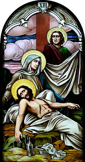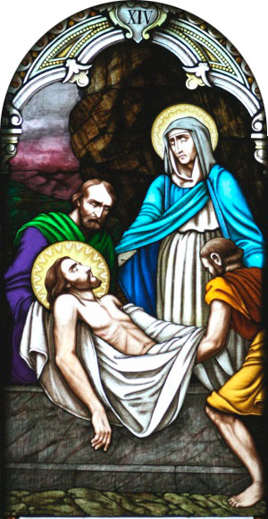 «Узяўшы цела, Юзаф захінуў Яго ў чыстае палатно і паклаў у сваёй новай магіле, якую высек у скале. Пасля прываліў вялікі камень да ўваходу магілы і адышоў» (Мц 27, 59–60).