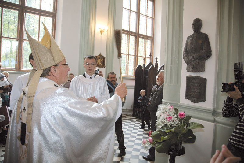 1930-х гадоў, і месца пахавання вызначыць не ўдалося. У сотую гадавіну з дня смерці асоба выбітнага святара атрымала годнае ўшанаванне ў пабудаванай ім святыні. Стацыі і барэльеф выканаў малады бабруйскі скульптар Яўген Дабравольскі.