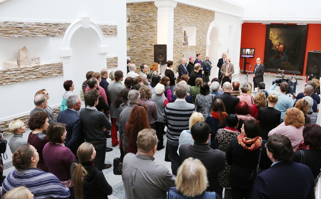 Перад прысутнымі выступаў таксама намеснік старшыні рады Беларускага фонду культуры Анатоль Бутэвіч, генеральны дырэктар мастацкага музея Уладзімір Пракапцоў, а таксама кіраўнік рэстаўрацыі карціны Аляксандр Лагуновіч. Мастак-рэстаўратар падзякаваў за супольную працу сваім калегам: Святлане Ішмаевай, Сяргею Шаціла, Кацярыне Грачовай і кіраўніку рэстаўрацыйных майстэрняў Аркадзю Шпунту, а ў канцы дадаў: «Нашая малітва — у працы».