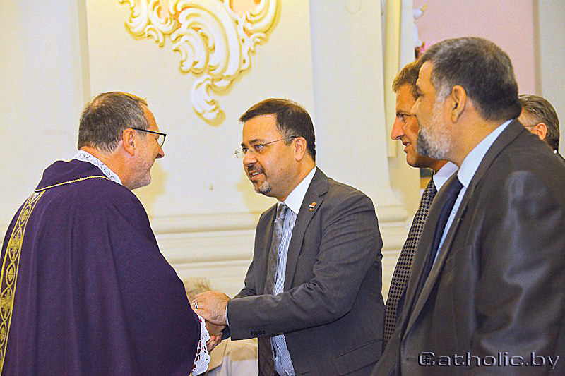 Імшу ўзначаліў Апостальскі нунцый у Беларусі арцыбіскуп Клаўдыё Гуджэроцці. Эўхарыстыю канцэлебраваў Мітрапаліт Мінска-Магілёўскі арцыбіскуп Тадэвуш Кандрусевіч. У святой Імшы ўдзельнічалі намеснік Упаўнаважанага па справах рэлігій і нацыянальнасцяў Уладзімір Ламека, кіраўнік Аддзела адукацыі і катэхізацыі Мінскай епархіі протаіерэй Аляксандр Шымбалёў (ад Праваслаўнай Царквы), прадстаўнікі дзяржаўнай улады, дыпламатычнага корпуса, святары, кансэкраваныя асобы і ўсе, хто пажадаў духоўна праявіць сваю салідарнасць з іракцамі, каб пераламіць абыякавасць свету і маліцца за мір.