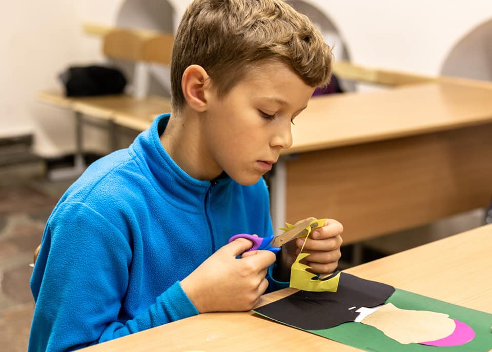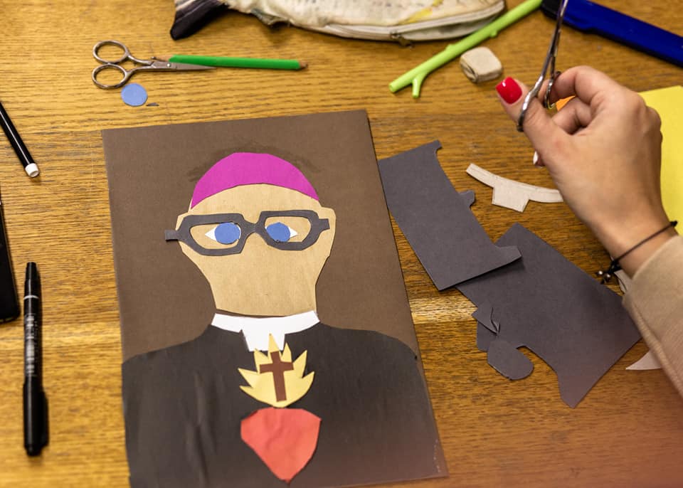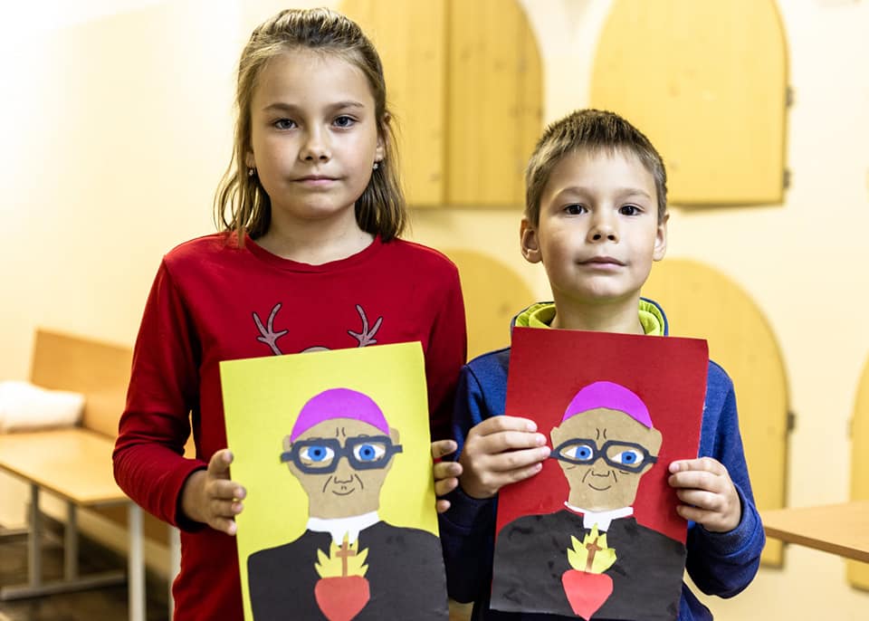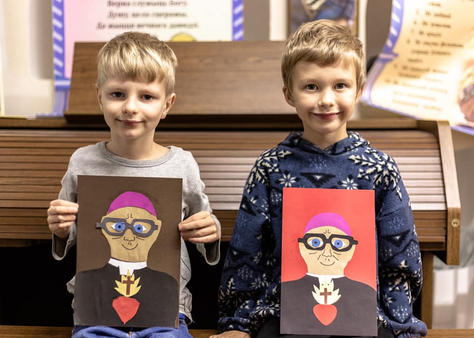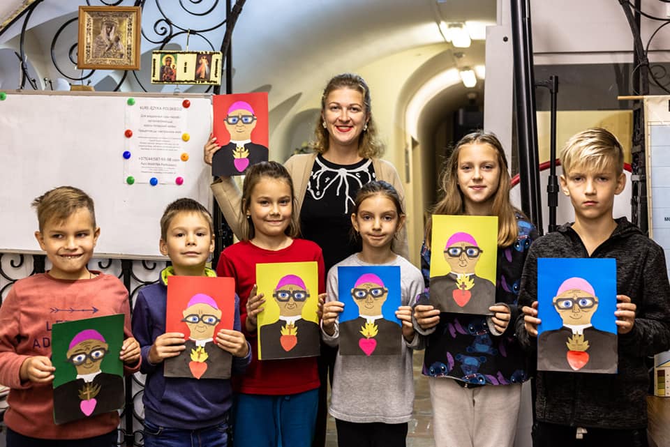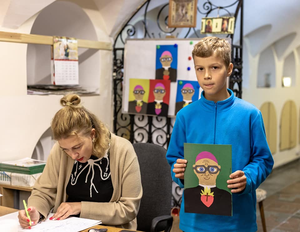 Надзея расказвае, што маленькія мастакі на адным з заняткаў спачатку намалявалі, а потым выразалі з каляровай паперы партрэт нашага арцыбіскупа: