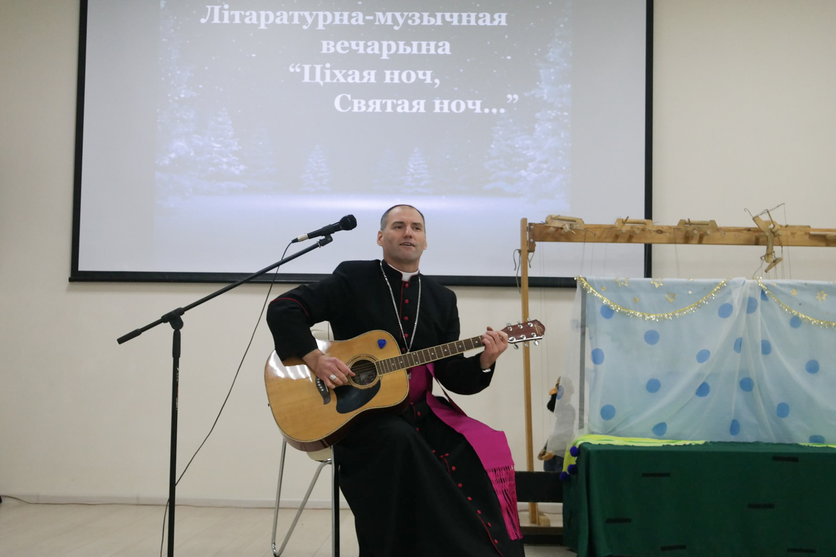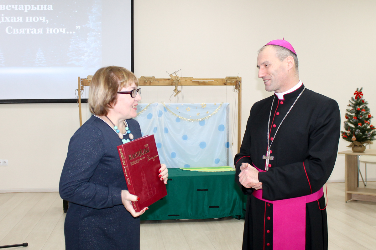 Безумоўна, надавала дзеі значнасці прысутнасць у зале біскупа Віцебскай дыяцэзіі Алега Буткевіча, які не толькі сардэчна прывітаў гледачоў, але і прачытаў верш і праспяваў пад уласны акампанемент калядную песню.