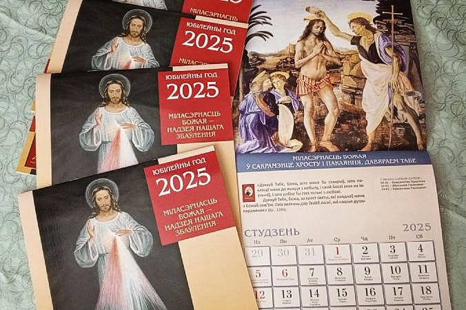 «Міласэрнасць Божая — надзея нашага збаўлення» — так называецца каляндар, які выйшаў у выдавецтве «Про Хрысто» на 2025 год. У Каталіцкім Касцёле ва ўсім свеце і ў Беларусі гэты год стане юбілейным, пра што падрабязна распавядае арцыбіскуп Юзаф Станеўскі, Мітрапаліт Мінска-Магілёўскі, у сваім уступным слове «Непахісная надзея на збаўленне ў Хрысце…»: па-першае Апостальская Сталіца абвясціла 2025 год Святым годам — гэта асаблівы час, калі вернікі могуць атрымаць Божае прабачэнне праз спецыяльныя адпусты; па-другое, у 2025 годзе спаўняецца 90 гадоў з таго часу, калі Езус у містычных аб’яўленнях навучыў святую Фаўстыну Кавальскую маліцца Вяночак да Божай Міласэрнасці; па-трэцяе, у 2025 годзе мы будзем святкаваць 1700-годдзе Першага Нікейскага Сабору, на якім былі акрэсленыя асноўныя дагматы хрысціянства; чацвёрты ж юбілей адзначыць Пінская дыяцэзія, якая была заснаваная роўна 100 гадоў таму.