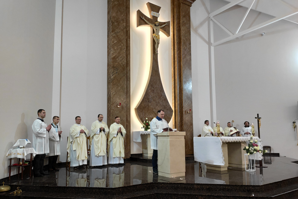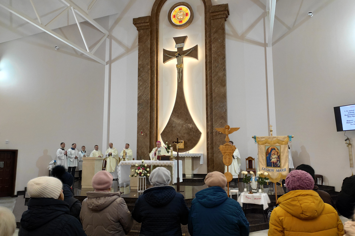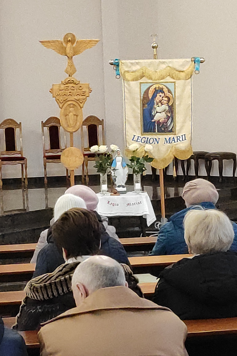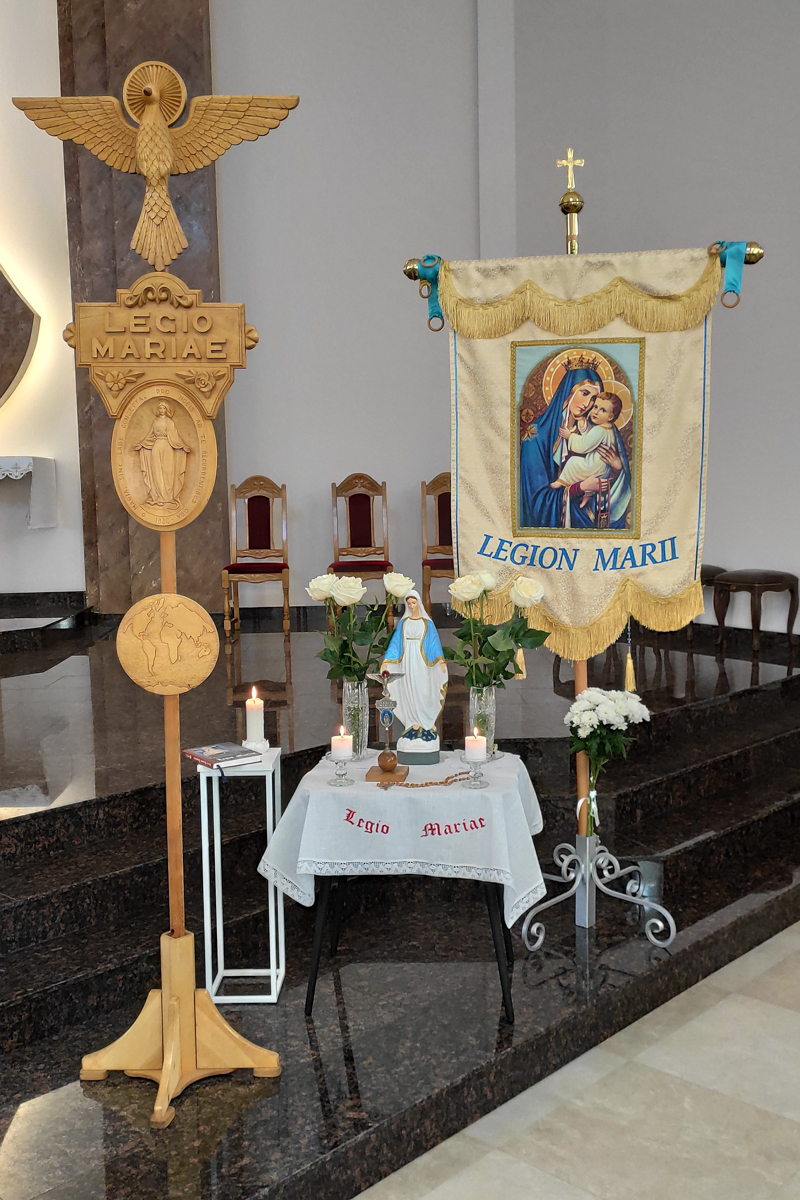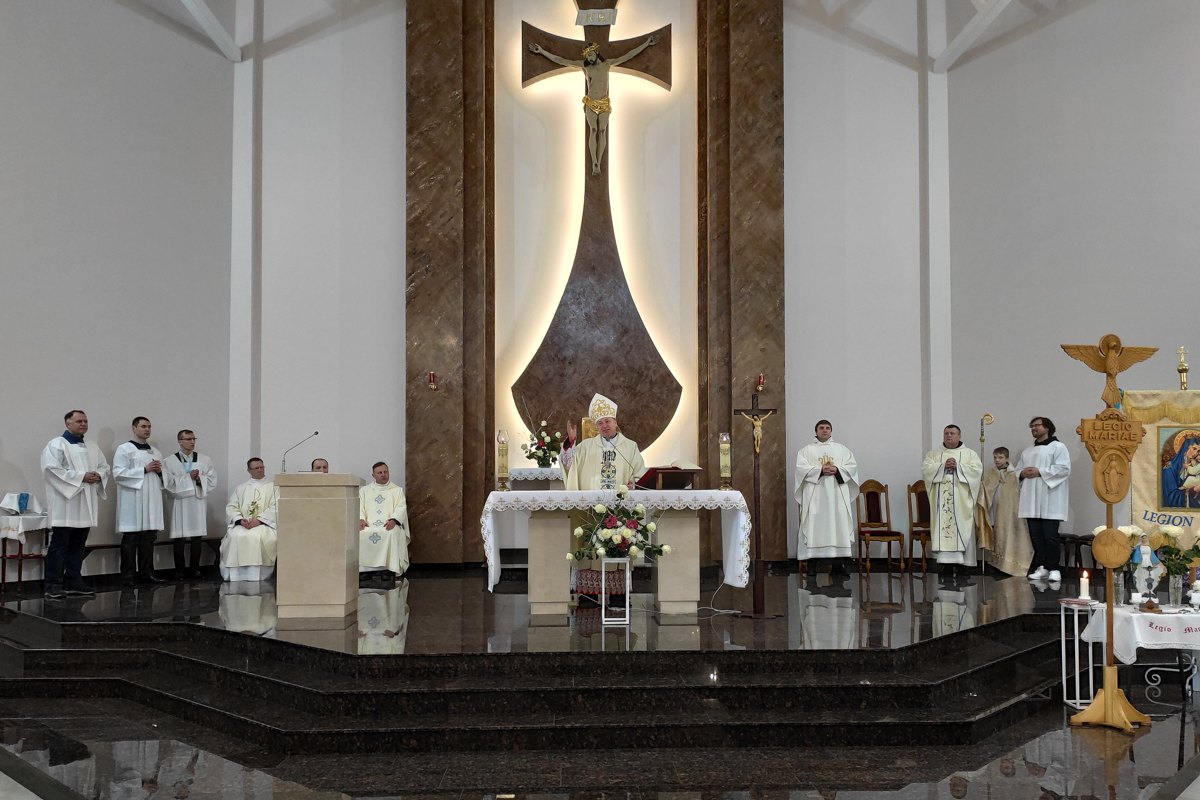 На пачатку святой Імшы біскуп Юрый Касабуцкі сардэчна прывітаў легіянераў, дзякуючы Богу за існаванне Легіёну Марыі ў нашай краіне, заўважыўшы, што распаўсюджванне Божай навукі праз апостальства легіянераў уносіць значны ўклад у жыццё Касцёла. Ён пажадаў, каб на шляху апостальства ў легіянераў ніколі не апускаліся рукі, як яны ніколі не апускаліся ў Марыі. Легіянеры павінны памятаць, што жыццё Марыі не было лёгкім, але Яна заўсёды заставалася не толькі Маці Хрыста, а і надзейнай і вернай Яго памочніцай.