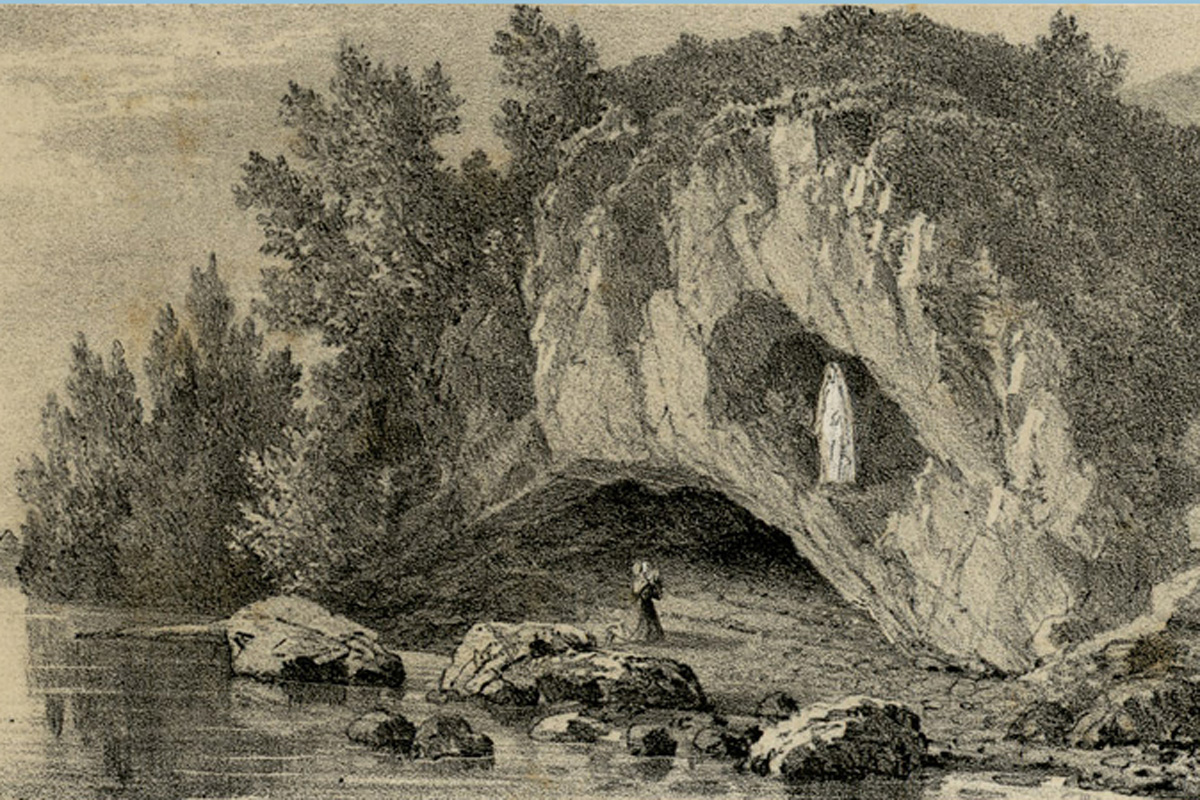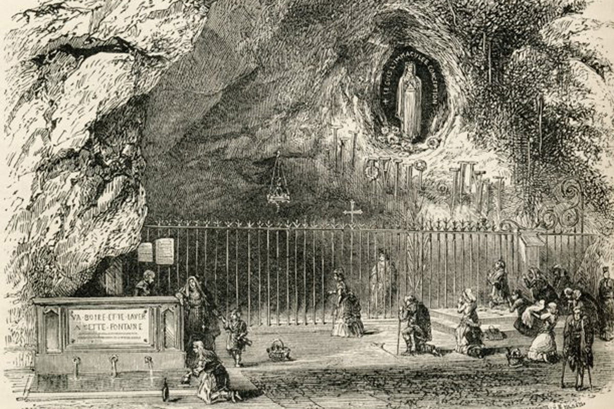 Гісторыя аб’яўленняў у Люрдзе пачалася 11 лютага 1858 года. У той дзень Маці Божая аб’явілася ў Масабэльскай пячоры беднай 13-гадовай дзяўчынцы Бэрнадэце Субіру. Гэта было першае з 17-ці аб’яўленняў, якія адбыліся з 11 лютага па 16 ліпеня.