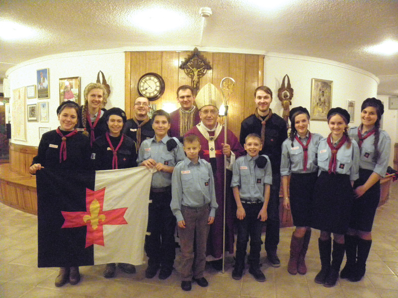 Дарагі чытач, ведай, што дзяўчына альбо хлопец у касцёле, апрануты ў скаўцкую форму, — гэта сябра вялікай сям’і каталіцкіх скаўтаў — скаўтаў Еўропы.