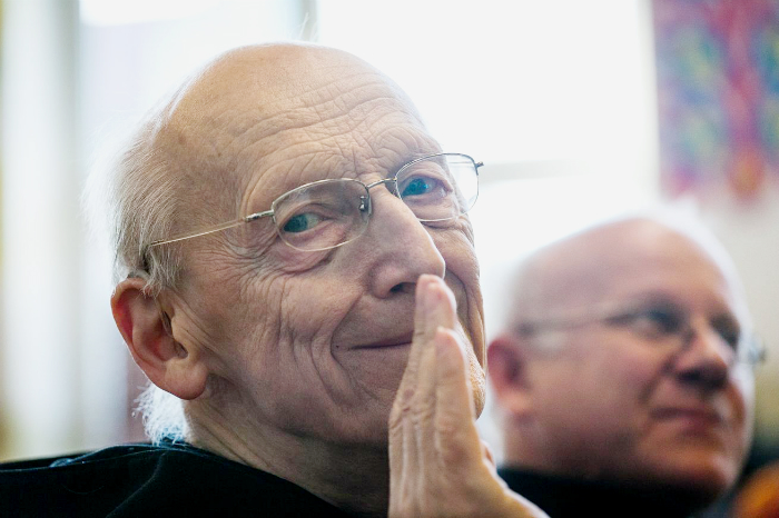 — Мой сябар, які вучыўся ў бэнэдыктынаў, запрасіў мяне наведаць іх вельмі цікавы кляштар у Тыньцы, паслухаць спевы, адчуць старажытную атмасферу — кляштар быў заснаваны ў 1044 годзе. Мне там спадабалася, але я вельмі моцна любіў сваю дыяцэзію. Я пачаў думаць. І так думаў ажно сем гадоў. У гэты час падхапіў пнеўманію і меў праблемы з лёгкімі. Біскуп жа, замест таго, каб «выгнаць» мяне, удзяліў мне пасвячэнне на паўгода раней, чым маім калегам. У яго была лёгкая рука — вось ужо 63 гады я ў святарстве. Потым адпусціў мяне да бэнэдыктынаў. Там я быў пробашчам, быў таксама прыёрам у кляштары — акурат тады, калі настала шчасце і радасць — абранне Святога Айца Яна Паўла ІІ на Пятрову сталіцу. Я быў доўгі час катэхетам і вучыў, вучыў, вучыў… Я не меў часу на тое, каб самому вучыцца, і цяпер зусім не маю, а ў ордэне адчуваю сябе цалкам рэалізаваным унутрана, калі не ўлічваць мае асабістыя недахопы.