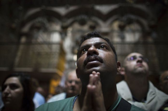 Малітва ў святыні Гробу Панскага ў Вялікую пятніцу, 3 красавіка 2015 г.