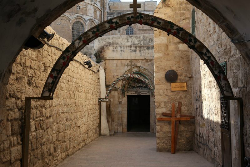 У 1320 г. надзвычай важныя для хрысціянаў і тысяч пілігрымаў месцы на Святой Зямлі Касцёл даверыў апецы францішканаў. Яны ўпарадкавалі спосаб наведвання і парадак малітваў у святых месцах. Лічыцца, што менавіта браты францішкане пачалі ствараць вядомае нам у сучасным выглядзе набажэнства Крыжовага шляху з рознымі варыяцыямі стацый (малітоўных прыпынкаў), праходзячы дарогу мукаў Езуса па вуліцах Ерузалема. Канчаткова набажэнства набыло сучасныя рысы толькі ў канцы XVIII ст., хоць назва «Крыжовы шлях» канчаткова замацавалася за гэтым набажэнствам намнога раней — у 1458 г. (Уільям Уэй).