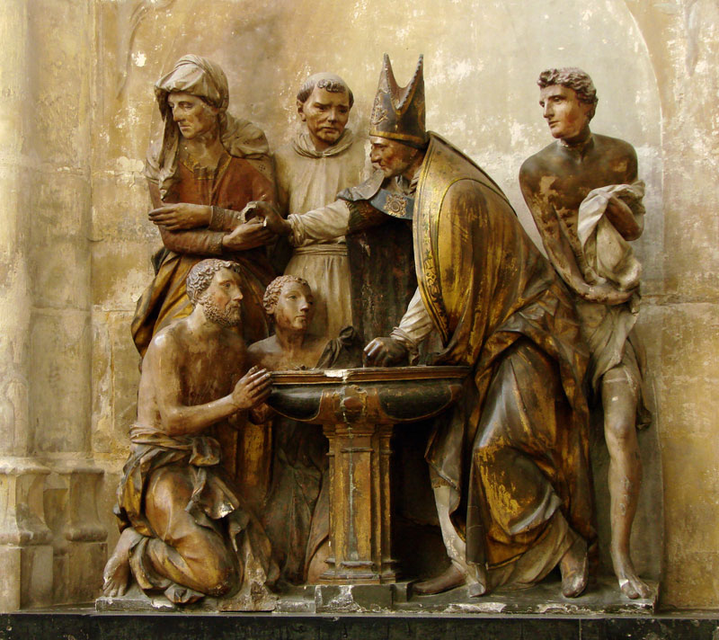дзе Яму належаць, і ласку адкуплення, якую Хрыстус набыў для нас сваёй смерцю на Крыжы. Далей ідзе абвяшчэнне Божага слова. Мы ўжо казалі пра тое, што хрост — гэта сакрамэнт веры, а святы Павел вучыць, што вера нараджаецца са слухання. Далей над кандыдатам чытаецца малітва экзарцызму, бо хрост азначае вызваленне ад граху і сатаны.