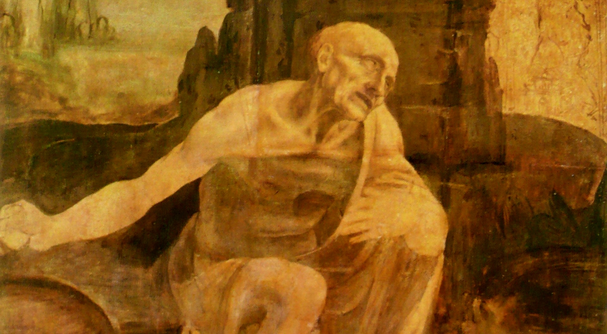 Фрагмент карціны Леанарда да Вінчы «Святы Геранім на пустыні»