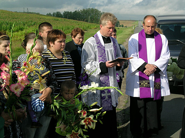 ...І, напэўна, наша малітва вельмі яму спадабалася, бо менавіта мы мелі той гонар, што жалобная працэсія па дарозе ў Пінск на хвіліну затрымалася каля вернікаў з Ішкалдзі і Паланэчкі, якія сабраліся, каб правесці ў апошні шлях свайго пастыра. Гэтыя некалькі хвілінаў надоўга застануцца ў памяці ўдзельнікаў незвычайнай сустрэчы. Мы не мелі нейкага незвычайнага падарунку для нашага святой памяці ксяндза кардынала, бо не былі ўпэўненыя, што ён хацеў бы з намі тут развітацца, але ён зрабіў гэта для нас! Эмінэнцыя, мы ведалі, што былі блізкія табе. Цяпер мы насамрэч гэта ведаем!