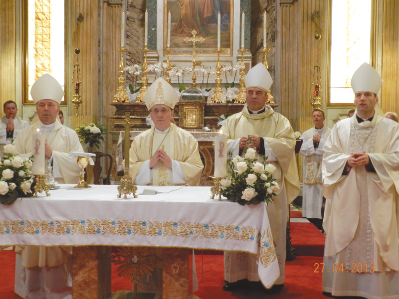 27 красавіка, у нядзелю Божай Міласэрнасці, калі былі абвешчаныя святымі Ян ХХІІІ і Ян Павел ІІ, у касцёле святой Ганны ў Ватыкане адбылася Імша падзякі за кананізацыю гэтых двух Пантыфікаў. Імшу, якую ўзначаліў Мітрапаліт Мінска-Магілёўскі арцыбіскуп Тадэвуш Кандрусевіч, канцэлебравалі старшыня Канферэнцыі Каталіцкіх Біскупаў Беларусі біскуп Гродзенскі Аляксандр Кашкевіч, біскуп Пінскі Антоні Дзям’янка, біскуп Віцебскі Алег Буткевіч, дапаможны біскуп Пінскай дыяцэзіі Казімір Велікаселец. У ёй удзельнічалі пілігрымы з Беларусі, якія прыбылі ў Апостальскую Сталіцу на ўрачыстасць кананізацыі.