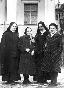 ...Углядваючыся ў старыя фотаздымкі, бачым ясныя твары тых, з каго пачалася новая парафія. На здымках часта сустракаюцца дзве вельмі падобныя жанчыны. Адну з іх ведае кожны, хто наведваў касцёл у нядзелю. Яна, напэўна, не прапусціла ў касцёле ніводнай нядзелі, ніводнага свята. Гэта панi Уладзя, Уладзіслава Чэрвіньская, дзякуючы якой мы маем магчымасць купіць патрэбныя нам дома і на св. Імшы культавыя рэчы. Гэтая маленькая хударлявая жанчына — сапраўдная гаспадыня ў касцёле. Ніколі не сядзіць без справы: прыбірае, падмятае, даглядае кветкі вакол касцёла, знаходзіць усе згубленыя і забытыя рэчы. Аднойчы знайшла і аддала арганісту рарытэтны спеўнік, пра які той ніколі нават не чуў. Другая жанчына, пані Ядзя, сястра пані Уладзі — таксама касцёльная актывістка. Іншы раз жанчыны займаюцца касцёльнымі справамі дапазна, калі нават гарадскі транспарт ужо не працуе...