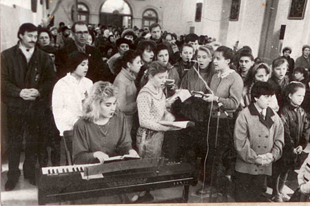Вось на здымку жаночая суполка. Яны самазабыўна спяваюць. Галасы гэтых жанчын і цяпер звонка раздаюцца пад скляпеннямі касцёла. Яны славяць Бога прыгожым спевам падчас набажэнстваў. Увогуле наша парафія вельмі музыкальная. Спяваюць усе, хто як здольны, бо той, хто спявае Богу, двойчы моліцца...
