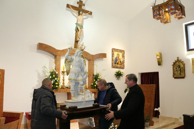 Фігура арханёла прабудзе ў Апостальскай Нунцыятуры да 14 лістапада, пасля чаго наведае парафію Св. апосталаў Пятра і Паўла і св. Яўгена дэ Мазэно ў капліцы Душпастырскага цэнтра пры епіскапаце Беларусі на вул. Кальцова, 153, дзе таксама моляцца семінарысты падрыхтоўчага курса Міждыяцэзіяльнай Духоўнай семінарыі.