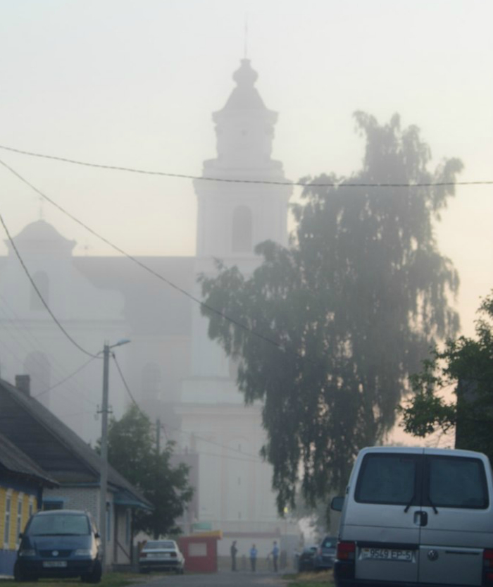 У шызым «сфумато» марознай раніцы былы касцёл Унебаўзяцця Найсвяцейшай Панны Марыі ордэну бэрнардынаў панаваў над тым, што можна было б назваць дзікаю роўняддзю. Ад былой прысутнасці бэрнардынаў не засталося і следу. Хіба што занядбаны архітэктурны цуд позняга барока. Убогія хаткі населенага пункта пад назваю Будслаў здаваліся прыгнечанымі маштабам агромністага збудавання.