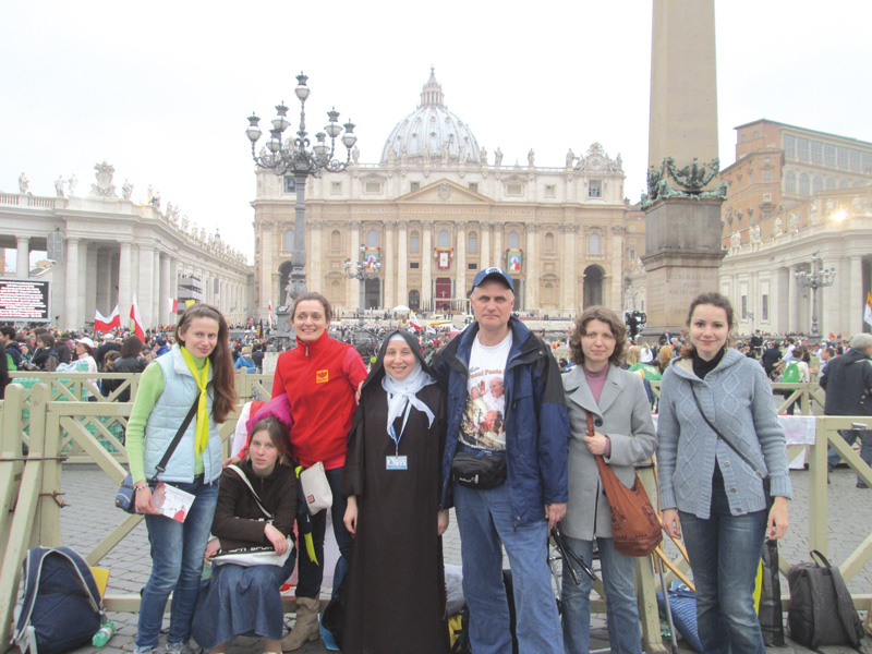 26 красавіка, у суботу, наша група спынілася на начлег у невялічкім гарадку Рыеці, за 100 км ад Рыма. Па плане ў нас быў начлег, а раніцай у нядзелю — выезд да плошчы св. Пятра для ўдзелу ў кананізацыі. Але, зразумела, гэты ўдзел азначаў усяго толькі назіранне за ўсім на тэлеэкране далёка ад плошчы. Знайшлося сем чалавек, якія вырашылі абавязкова трапіць на плошчу, хоць гэта было малаверагодна, бо ўжо з вечара суботы ўсе падыходы да яе цалкам занялі пілігрымы.