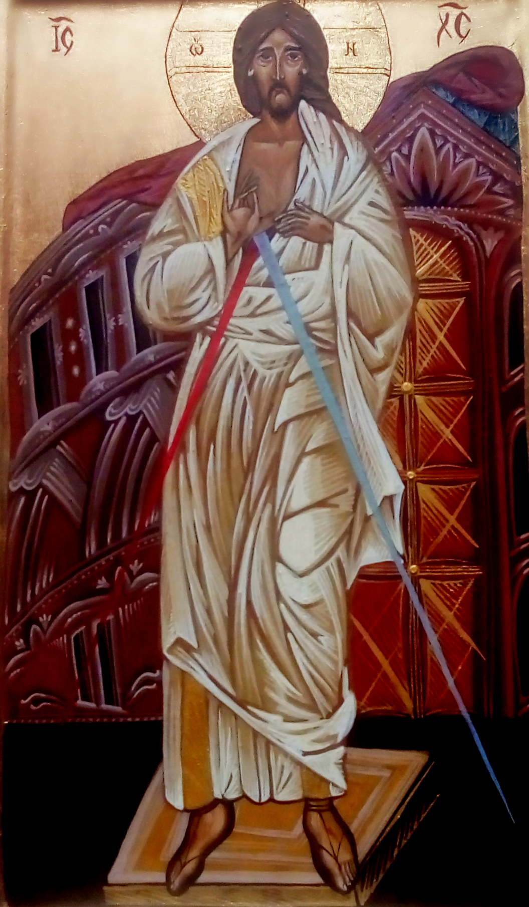 Мая дачка Надзея, якая жыве ў Польшчы, піша іконы. Калі яна спытала ў мяне, якую б ікону я хацела атрымаць у падарунак, я папрасіла намаляваць Езуса Міласэрнага. Яшчэ раз перачытаўшы тыя месцы з дзённіка святой Фаўстыны Кавальскай, дзе Хрыстус кажа сястры пра тое, як Ён павінен выглядаць, дачка прыступіла да працы. На яе іконе Езус выглядае інакш, чым мы прывыклі Яго бачыць, але для мяне Ён і ў такім абліччы таксама вельмі дарагі і блізкі.
