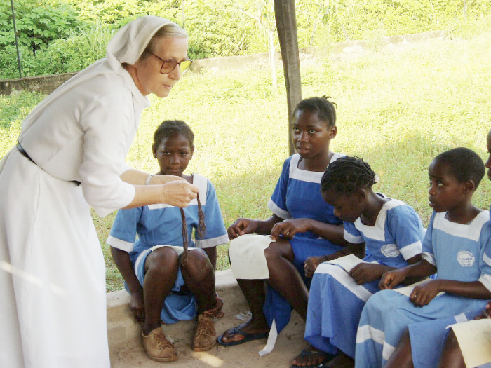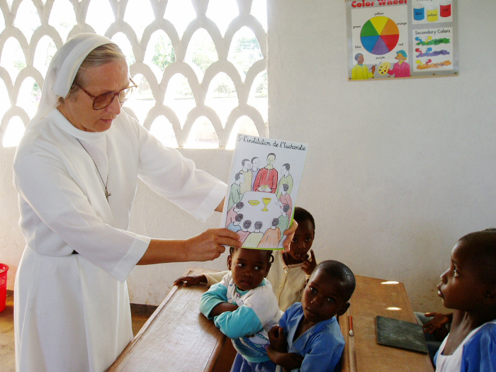 На місіях, апрача катэхезы пры парафіі, я рыхтавала дзяцей і моладзь да святых сакрамэнтаў і праводзіла катэхезу ў каталіцкіх школах. У горадзе Гаруа Булай (Камерун) пачатковаю школаю імя св. Паўла на працягу многіх гадоў апекаваліся менавіта сёстры. У першыя гады маёй працы ў гэтай школе адна з мясцовых настаўніц звярнулася да мяне з прапановаю: «Сястра, мы будзем дапамагаць Вам размаўляць па-французску, а вы навучыце нас праводзіць катэхезу». Мне вельмі спадабалася гэтая ідэя. З таго часу я пачала дбаць пра катэхетычную дапамогу для настаўнікаў у кожным класе і вучыць іх простым метадам вядзення катэхезы.