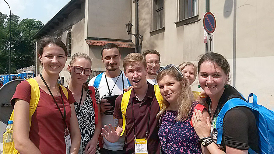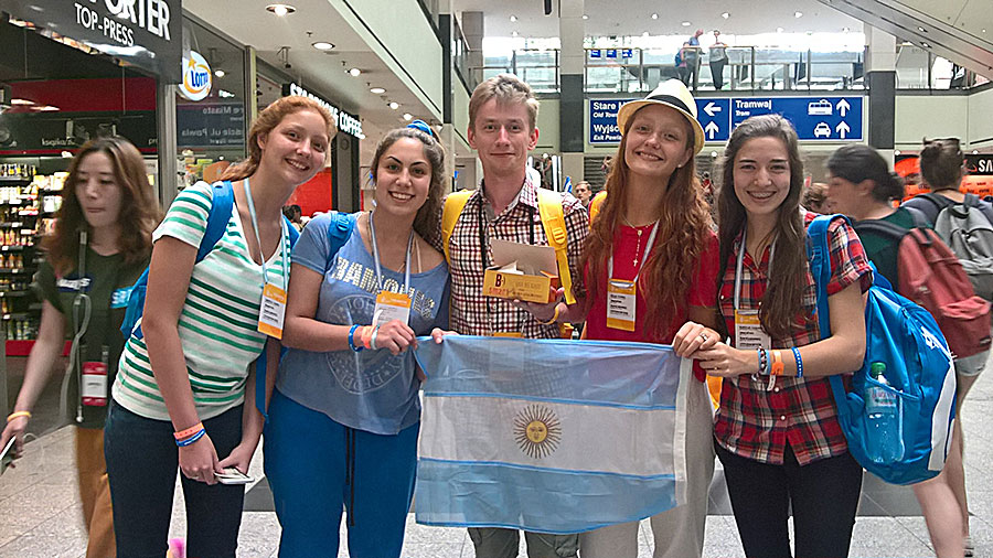Знамянальнаю была і сітуацыя пры перасадцы на аўтобус Варшава — Кракаў. Кідаліся ў вочы шматлікія сцягі розных краінаў і кантынентаў — найбольш бразільскія. Замест аднаго рэйсавага «польскага буса» ішло адразу два, а велізарны (як мне тады падалося) інтэрнацыянальны натоўп, здавалася, не змяшчаўся на платформе вакзала. Месцаў усё ж такі хапіла ўсім, але адчуванне багатай моўнай і культурнай пярэстасці не пакідала мяне менавіта з той перасадкі ў Варшаве ажно да ад’езду з Кракава дамоў.