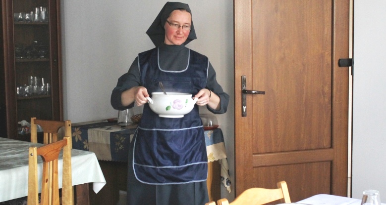 Пакуль дзеткі малююць, я накіроўваюся на кухню з надзеяй знайсці там сястру Антаніну, якая мае абавязкі кухара (прынамсі ў гэты дзень). Але знаходжу сястру Рэгіну, якая таксама распавядае мне пра сваё пакліканне.