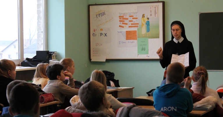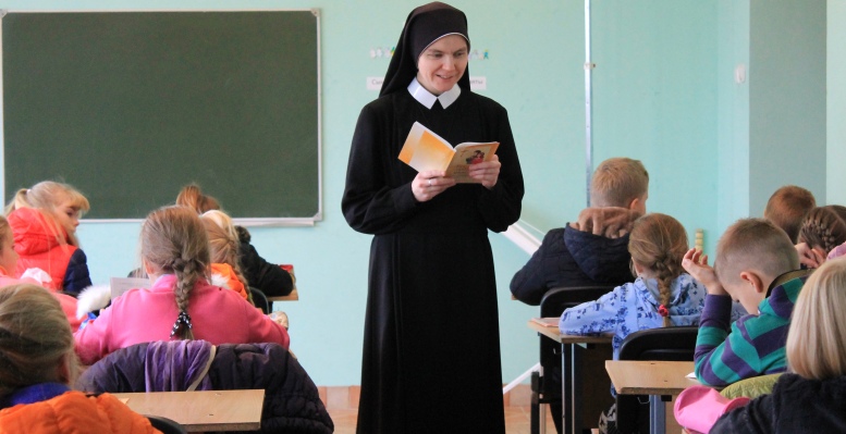 Ужо пасля сняданку разам з сястрой Таццянай Гмызаю мы накіраваліся ў катэхетычны клас. Катэхеза для 2-га года падрыхтоўкі да святой Камуніі звычайна пачынаецца а 10–й гадзіне, але сястра заўсёды прыходзіць раней, за хвілін 20–30.