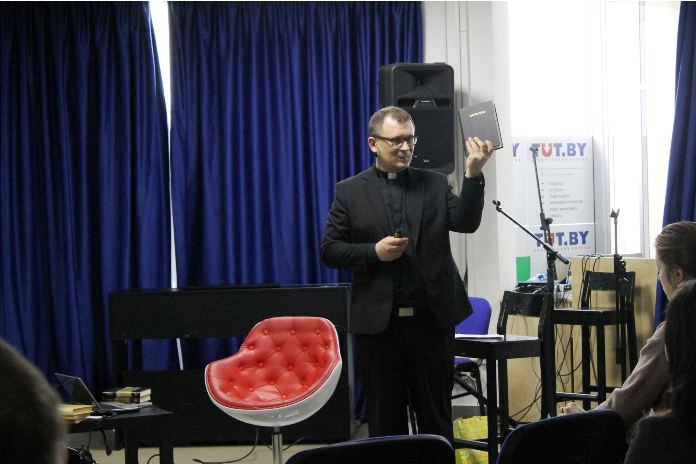 У галерэі TUT.BY прайшла тэматычная лекцыя кс. Сяргея Сурыновіча, прысвечаная гісторыі перакладаў Святога Пісання.