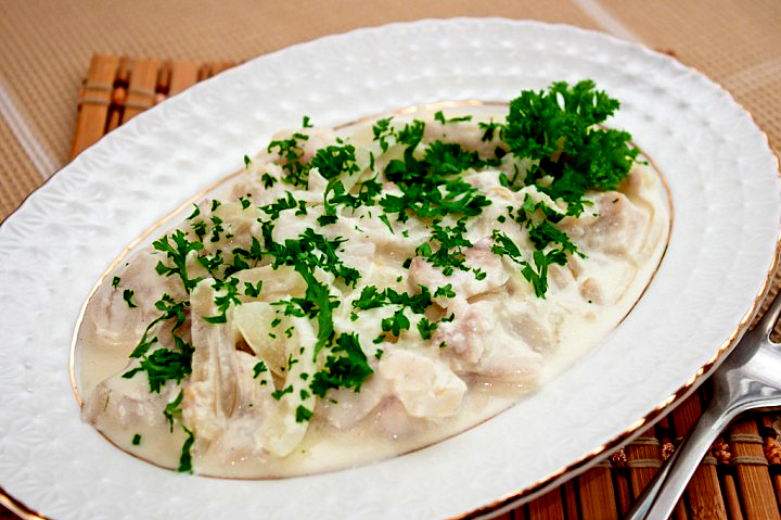 Рыба, тушаная з цыбуляю і смятанаю