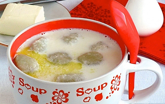 Суп малочны з бульбянымі клёцкамі